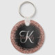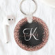 Personalize facilmente essa moda elegante design de chaveiro com bonito brilho rosa-ouro brilhante em um fundo metálico escovado preto.