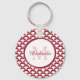 Dê ao seu estilo uma borda moderna com este padrão gráfico vermelho e branco de escamas em escala de peixes, o chaveiro básico que você pode personalizar adicionando seu nome e monograma inicial. Este design de padrão geométrico de tendência é ousado, mas na moda.