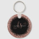 Chaveiro de Monograma Elegante Glitter Dourado Glitter, personalize facilmente este design de chaveiro chic de tendência apresentando elegante brilho rosa-ouro brilhante sobre fundo preto. O design apresenta seu monograma manuscrito com espirais bonito e seu nome.