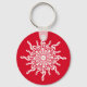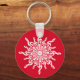 Chaveiros musicais únicos para músicos e amantes da música nas férias de inverno. Derreter clefs brancas formam um floco de neve feito de notas de clef triplas. Use o modelo de texto para adicionar um inicial ou um monograma ao meio do design ornamental na frente. Adicione um nome, uma frase de feriado favorita ou uma citação inspiradora no verso. Edite para mudar o fundo vermelho natalino, a borda do círculo central e a fonte elegante e antiga para qualquer cor que desejar. ♡ Idyllfire