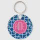 Chaveiro Monogramas de padrão geométrico rosa-quente e azul