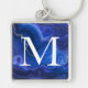 Crie seu próprio chaveiro de monograma para ela. O fundo da arte digital apresenta marinho, azul real e arte digital dourada. Você pode usar um estilo de fonte diferente conforme necessário ou adicionar um nome específico.