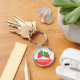 Um design de morango na moda e divertido. Duas bagas suculentas com caules e folhas verdes. Uma borda de morango com pontos brancos. A mensagem "morango" pode ser alterada se assim o desejar.