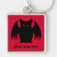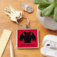 Morcego vampiro negro e feroz em um fundo vermelho e impresso em uma legal cadeia de chaves quadradas premium com espaço para seu nome. Isso será impressão mais claramente do que mostrado na imagem de pré-visualização compactada.