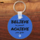 Palavras para viver. Este chaveiro inspiracional tem um texto preto sobre um fundo azul para inspirá-lo. "ACREDITE em si mesmo, ALCANCE seus objetivos." Isso é tudo que você tem que fazer para liberar o poder dentro.