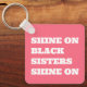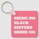 Este Chaveiro Motivacional Afro-Americano (Preto) tem 'Brilhando, irmãs pretas, brilhando' escrito em branco sobre um fundo rosa. Esta mensagem positiva e estimulante e motivacional visa as mulheres e raparigas negras para a sua saúde mental e traz positividade onde quer que seja transportada. Uma mensagem encorajadora e inspiradora para trazer convosco nas vossas viagens.