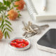 Fotografia de muitos tomates vermelhos maduros impressos nos bordos do produto.