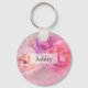 Uma cadeia-chave com uma fotografia com um buquê de cravos cor-de-rosa. Preparado num fundo etéreo sonhador.