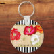 Chaveiro Na moda Red Poppy Floral Black Stripes Com Nome