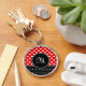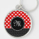 na moda vermelho e preto chaveiro com o seu monograma e corações brancos em padrão de bolinhas