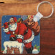 Chaveiro Natal Antigo, Papai Noel Descendo a Chaminé com Pr