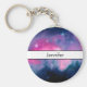 Um chaveiro com um belo design abstrato em rosa e azul. Estrelas brancas espalhadas por toda esta imagem do cosmos. Trippy e legal. Uma faixa branca com uma borda preta através do centro com seu nome dentro.