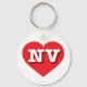 Esta cadeia-chave apresenta um coração vermelho vibrante contendo as letras maiúsculas, brancas e em negrito NV, a abreviação oficial do estado de Nevada, o estado prateado.