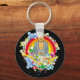 Meditando Buda pacificamente se senta entre um conjunto colorido de estrelas, arco-íris, flores e símbolos Yin Yang! Uma explosão de coloração e de consciência! Olhos pegando presentes de Buda!