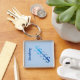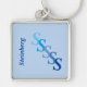 Sobrenome (apelido) e inicial (monograma), alterar a cor de fundo (azul claro). O nome aparece em azul escuro. O inicial está em cinco tons de azul, de claro a escuro, frouxo, frente a trás.