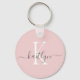 Este moderno chaveiro cor-de-rosa pincelado com seu primeiro nome em uma fonte de script de tendência em preto e seu primeiro início em uma fonte moderna de boné em branco é perfeito para suas chaves.