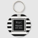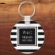 Na moda trendy personalizadas iniciais monogramas chaveiro com um padrão listrado preto e branco com suas iniciais e nome da família com sua data estabelecida em um quadrado bordado preto com um texto branco clássico. Projetado por Thisnotme©