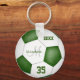 Este chaveiro de futebol feminino apresenta uma bola de futebol tradicional com painéis verdes e brancos - os painéis verdes são misturados com um padrão caleidoscópico floral - personalizam o nome do jogador, o monograma, o número de camisa e o ano escolar - por katz_d_zynes