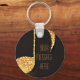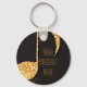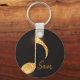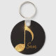 A música de ouro preto anota o nome de monograma chaveiro Simples e elegante para um amante de música! Fundo preto com notas falsas de ouro. Modelo para seu nome, script de estilo com letra ouro.