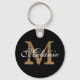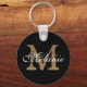Crie o seu próprio chaveiro preto redondo personalizado com o seu nome e monograma personalizados do script de caligrafia bonito.