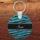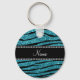 Padrão de listras zebra turquesa/teal/aqua glitter (impressão animal) (não brilho real) com uma faixa negra de diamantes (não diamantes reais) personalizada com o seu nome, presentes ou presentes monográficos ou suas iniciais.
