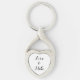Anel de chave em forma de coração mostrado em preto/branco com nomes personalizados. Personalize este item e altere os nomes para o seu.