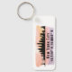 Chaveiro apresenta silhueta de linha do horizonte Nova Iorque com abertura de cor d'água e coordenadas de latitude e longitude