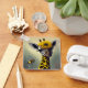 O chaveiro bonito apresenta uma pintura surreal gerada pela IA de uma girafa branca lotada com um abelhão.