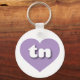 Este chaveiro apresenta um coração de lavanda em forma e legal contendo as letras maiúsculas em negrito, branco, arredondadas, uma abreviação lúdica para Tennessee, o estado voluntário.