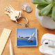 Edward Hopper, realismo novo, o pé longo. Veleiro na água azul bonita com o farol na costa no fundo.