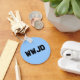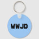 Chaveiro de design WDJ, o que Jesus faria? Com fundo colorido que pode ser mudado para se adequar ao seu gosto