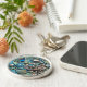 Grande chaveiro superior redondo do metal com uma imagem de uma sereia de prata, de um seashell e de uma variedade do grupo dos baubles em azul e verde iridescentes. Botão e colar de harmonização See. Veja a coleção inteira do chaveiro na seção ESPECIAL dos favoritos para festas dos TOQUES |.