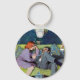 Artista: Lynn Buckham | Uma mulher de vestido roxo e um homem de fato sentado num sofá verde.