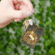 Chaveiro com tapeçaria medieval O Unicórnio em cativeiro (1495-1505). A sétima tapeçaria no The Unicorn Tapestries - também conhecida como The Unicorn Rest in a Garden - mostra um unicórnio branco com um colarinho azul sentado dentro a cerca. A grama verde e lindas flores rodeiam o unicórnio. Um presente fantástico para colecionadores de arte medievais e amantes da fantasia!