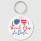 Obrigado Joe Biden chaveiro, escrito em letras vermelhas e azuis cursivas sob um legal par de óculos escuros com a bandeira americana na sombra. Democratas mostram seus obrigados ao nosso presidente por fazer tanto pelo nosso país.