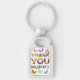 Obrigado Mamãe imagem decorativa de texto contra o fundo branco. Seis borboletas coloridas flutuam em torno da imagem ou sentam em uma letra. Um chaveiro de metal colorido personalizável para ser dado como um pequeno presente no Dia de as mães, aniversário ou qualquer outra ocasião. Você pode trocar borboletas e colocar algumas fotos em vez delas. Use o botão "Personalizar" para alterar o tamanho da imagem de texto, para realocar borboletas ou para alterar a cor do plano de fundo. Divirta-se, personalize-se e comprar um, e seja feliz!