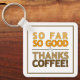 Dê obrigados para cafeína. Chegou onde você está na vida! "Até agora está bom. Obrigados, café!" Faz um chaveiro excelente para o teu cofre de café, onde sabemos que escondes as coisas boas.