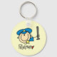 Um design de polícia com figuras de pau, com um policial de uniforme e chapéu, com um clube de billy e um texto que diz "Policial" com coração vermelho!