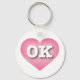 Esta cadeia-chave apresenta um legal coração cor-de-rosa com um centro lavado em branco contendo as letras negrito, branca, maiúsculas OK, a abreviação oficial para Oklahoma, o estado mais rápido.