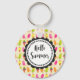 Um chaveiro com a imagem de um padrão de tempo de Verão de picolés e sorvetes em aquarelas. Olá Summer escreveu em uma fonte de tendência divertida dentro a um quadro cômico.