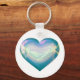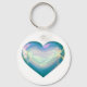 Este chaveiro apresenta um coração azul opal com uma aparência de cetim.