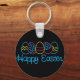 Esta design apresenta ovos decorados em néon de cores rosa, amarela, roxa e azul. O felz pascoa é impresso na parte inferior deste design. Um fundo preto é aplicado atrás. Estas correntes-chave vêm em estilos variados.