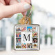 Crie seu próprio chaveiro de colagem personalizada de 12 fotos com suas imagens e monogramas personalizados em um na moda elegante fundo de mármore branco.