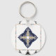 Este chaveiro apresenta um padrão geométrico surpreendente e moderno que cria um design atraente. Os modos repetidos de arcos estilizados e círculos em laranja e azul vibrantes se destacam em um fundo preto e branco profundo. É um na moda e acessório único, perfeito para adicionar um pop de cor e um toque de abstrato de arte às suas chaves ou bolsa.