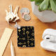 Padrão perfeito de chaves antigas, douradas e silhuetas em fundo preto.