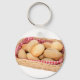 Pães brancos e castanhos frescos num cesto de wicker revestido com gingham