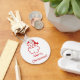 Os papais noeis enfrentam as palavras "Feliz Natal!" abaixo. Imagem e texto em vermelho.