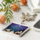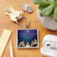 Linda cena da Natividade com um anjo no céu noturno com o Pai Natal a ver a cena. Um presente cristão único para o Natal.