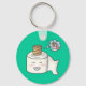 Um bonito desenho animado de papel higiênico com seu rolo higiênico saindo, sonhando que é um belo e mágico unicórnio. Chaveiro engraçada e absurda para pessoas com senso de humor e para inspirar pessoas a sonhar.