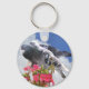 Esta adorável chaveiro, puxada pelo zip, mostra uma fotografia tirada na minha sacada de um par de pombos sentados no caminho da sacada sobre uma exibição colorida de alemães cor-de-rosa. Um presente de excelente e um adorável acessório.